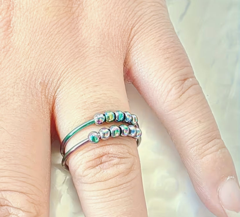 Fiddle Sensory adjustable Relaxation Ring with Rainbow beads